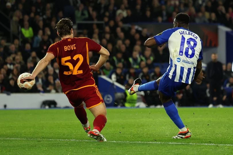 GOL! Roma menambah gol pada menit ke-83. Niccolo Pisilli, yang tak terkawa, menyambut umpan bola dari Angelino.